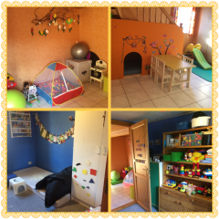 Pasningsordningen rummer 2 dejlige legeværelser (20 m2), et køkken (30m2) og et stort bryggers (30 m2). Derudover findes et dejligt motorik / tumlerum (18 m2).